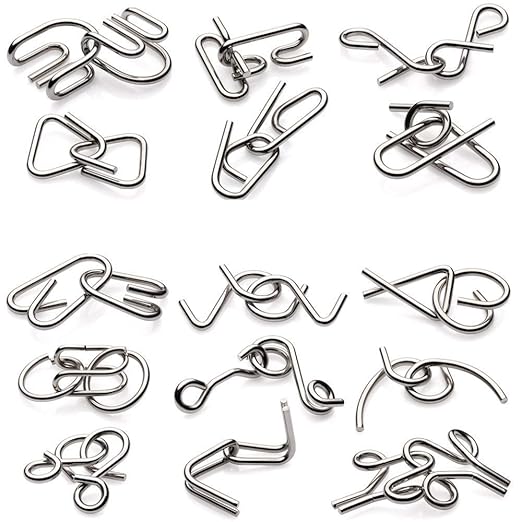 Includes 12 different style metal wire puzzles, made by high quality mental and you can keep the shape from bending and breaking. The IQ toy doesn't have sharp edges to keep you and your children safe.